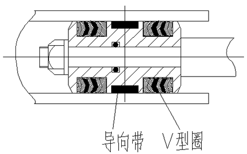 圖中即為7組V型圈的密封形式,2只V型圈加1只導向帶結(jié)構(gòu)。