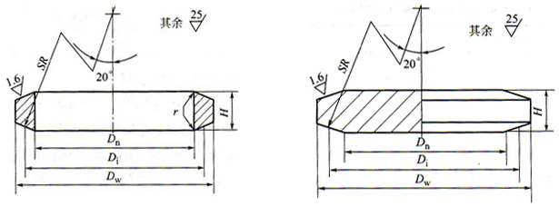 八角墊與0形密封墊的斷面形狀為八角形和0形,安裝在溝槽中使用??繅|圓與溝槽的斜面接觸并壓緊而形成一個環(huán)形窄帶面并壓光而進行密封,主要運用在高壓高溫氣體的場合。它們的適用范圍與透鏡墊相類似。制作八角墊和0形密封墊的材料與熱處理要求見表1—2。
