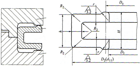C形環(huán)密封結構如圖1—5所示,在C形環(huán)密封件上下方有兩個凸出的圓弧面為密封面,加適當?shù)念A緊力后,達到一定的密封作用。在C形環(huán)受到壓力的作用下,迫使環(huán)口上下張開,壓力越大,張開力越大,從而達到密封的目的。