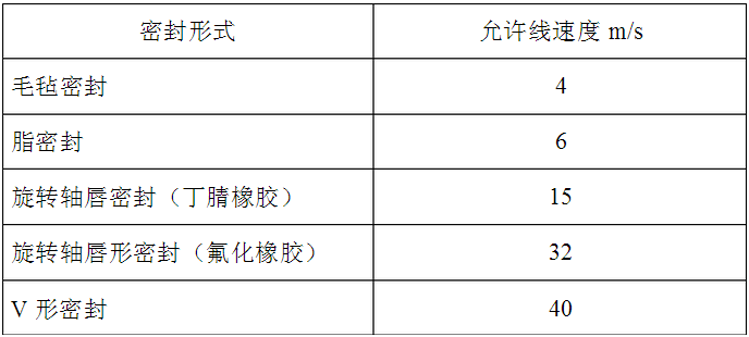 接觸式密封圈的允許速度因滑動(dòng)表面粗糙度、精度、潤(rùn)滑、使用溫度等不同而不同,參考值如下表所示: