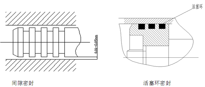 間隙密封是一種常用的密封方法,它依靠相對運動零件配合面間的微小間隙來防止泄露。一般間隙為0.01-0.05mm。間隙密封在活塞的外圓表面一般還開幾道寬0.3-0.5mm、深0.5-1mm、間距2-5mm環(huán)形溝槽,也稱平衡槽。主要作用是減少徑向卡緊力和自潤滑功能。間隙密封簡單,不用任何密封件,摩擦力小,但對零件加工精度要求高,不能完全阻止泄漏,且密封性不能隨壓力升高而提高,只適用于直徑較小,壓力較低,速度較快,密封性能不是很高的環(huán)境,如換向閥、液壓泵(柱塞泵)、液壓馬達、小直徑快速缸等。